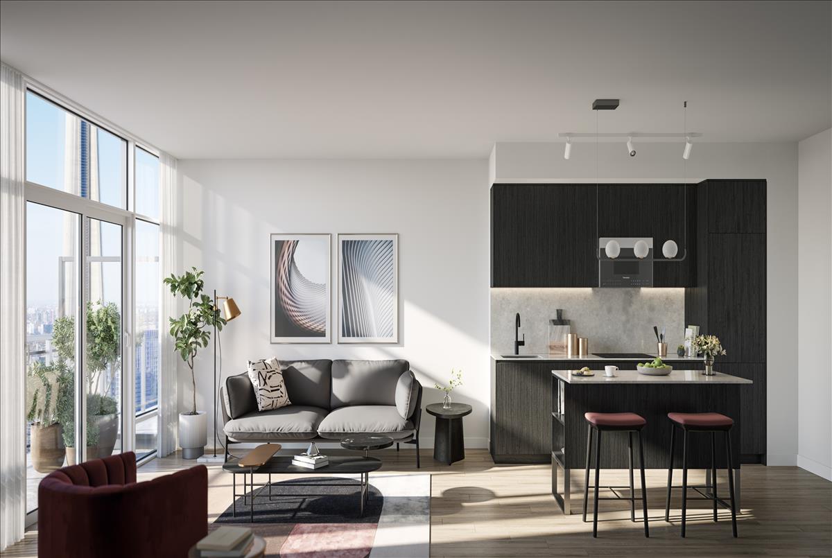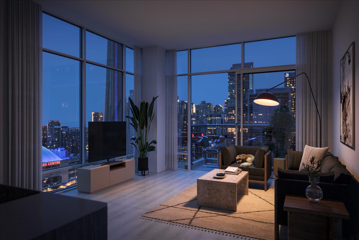 Announcing the epitome of modern elegance at Q Tower, a 60-storey skyscraper that combines rebellious flair and classic sophistication. A majestic expression in contemporary architecture, the refined tower rises catching sunlight from the south and reflecting a prism of city lights from the north. With a dark-coloured exterior palette and zigzag balconies, the design exudes drama and dynamic movement. In sync with the uniquely urban and natural surroundings, Q Tower will feature an onsite public park connecting residents via pedestrian routes and bicycle paths linking Toronto’s waterfront.